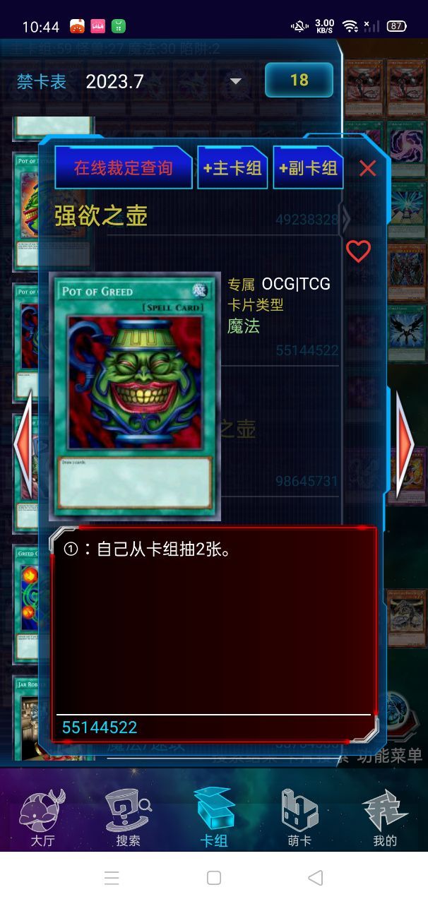 游侠岚发动通常魔法卡《强欲之壶》,从卡组抽两张卡!