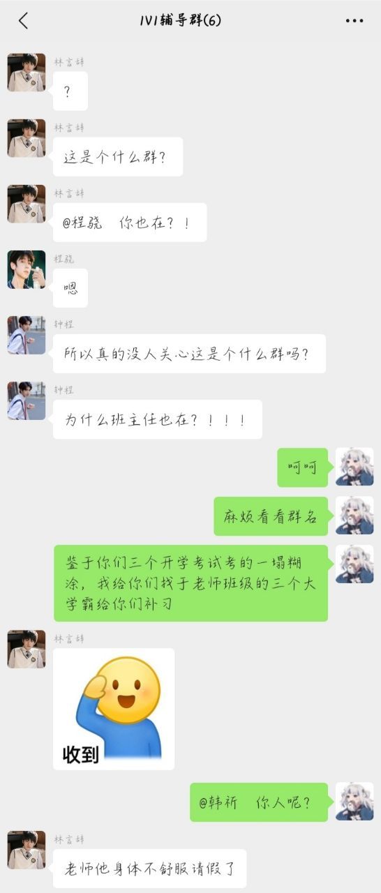 万能工具人徐老师:这会放学了,他们应该都有空了,拉个群聊聊吧